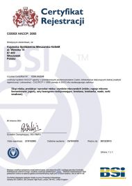W roku 2005 firma uzyskała certyfikat Zarządzania Jakością ISO 9001:2000, w 2009r certyfikat ISO 9001:2008 a w 2016r certyfikat ISO 22000 -dot. Zarządzania Bezpieczeństwem Zywności.